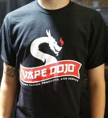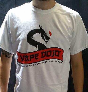 Men's t-shirt with traditional Vape Dojo logo.  Available in White with size options of: Small, Medium, Large, X-Large, 2X-Large and 3X-Large and Black with size options of: Small, Medium, Large and X-Large.